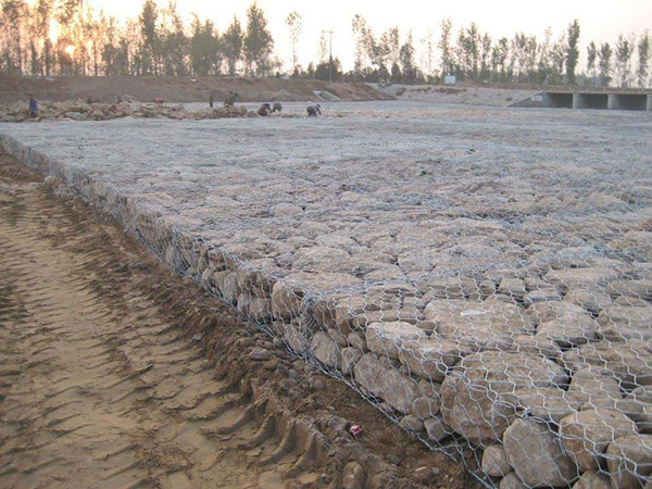 鉛絲石籠就是用重型六角網(wǎng)組裝成箱籠狀,在工程現(xiàn)場(chǎng)向箱籠內(nèi)填充一定規(guī)格的,滿足一定要求的石料,以形成自透水的、柔性的、生態(tài)的防護(hù)結(jié)構(gòu)。