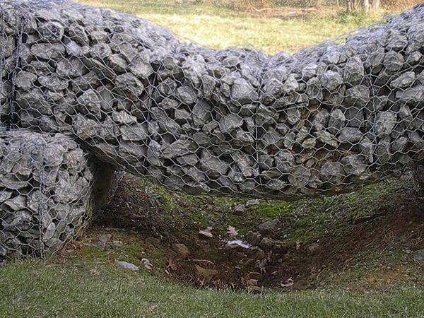 2.地基準備:放置塞克格賓的地基無需太平實。在地基環(huán)境差的濕地環(huán)境中,石籠網(wǎng)可以用來提供固定式平臺。根據(jù)工程需求,裝入適當?shù)牟牧?,層層放好賽克格賓。格賓結構也要符合工程規(guī)范??梢园淹凉た椢飱A在各個格賓層中。